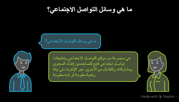 هي منصات رقمية وتطبيقات تتيح للأفراد والشركات التواصل ومشاركة المحتوى، وبناء علاقات اجتماعية أو مهنية عبر الإنترنت.